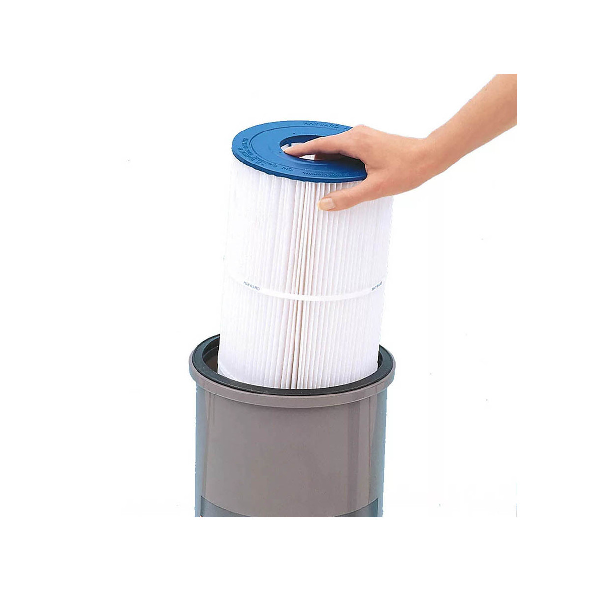 Po vypnutí filtračného okruhu a odvzdušnení nádoby je možné kartušu veľmi rýchlo vybrať (odskrutkuje sa poklop) a opláchnuť ju pod tečúcou vodou. Vhodná je výmena kartuše po 2 rokoch používania (závisí od intenzity užívania bazéna).