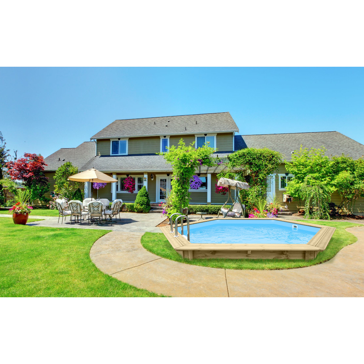 Celoročný drevený bazén z masívu zo severskej borovice. Možnosť zapustiť do ľubovoľnej hĺbky do terénu.