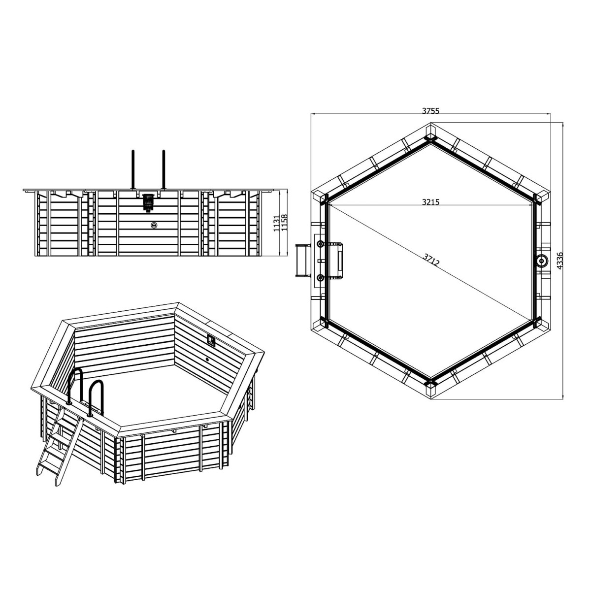 Vnútorné rozmery bazéna: 371 x 321 x 113 cm.