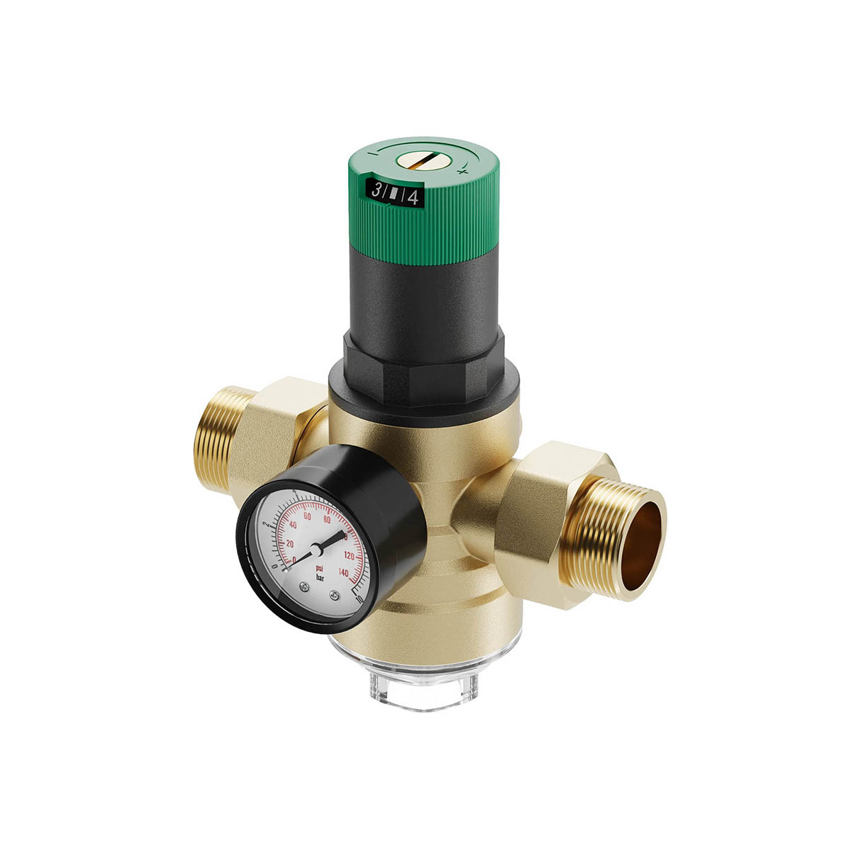 USTM redukčný ventil je spoľahlivným riešením na kontrolu tlaku vody v inštaláciách. Membránový ventil chráni zariadenia pred kolísaním tlaku a poškodením. Vďaka presnej regulácii zostáva výstupný tlak rovnomerný, aj pri nárazovom vstupnom tlaku. Na spodnej časti ventilu sa nachádza nerezový sieťkový filter, ktorý zachytí nečistoty ako piesok, štrk či bahno. Manometer na prednej časti má rozsah 0 -10 barov. Tento ventil disponuje certifikátom na styk s pitnou vodou.