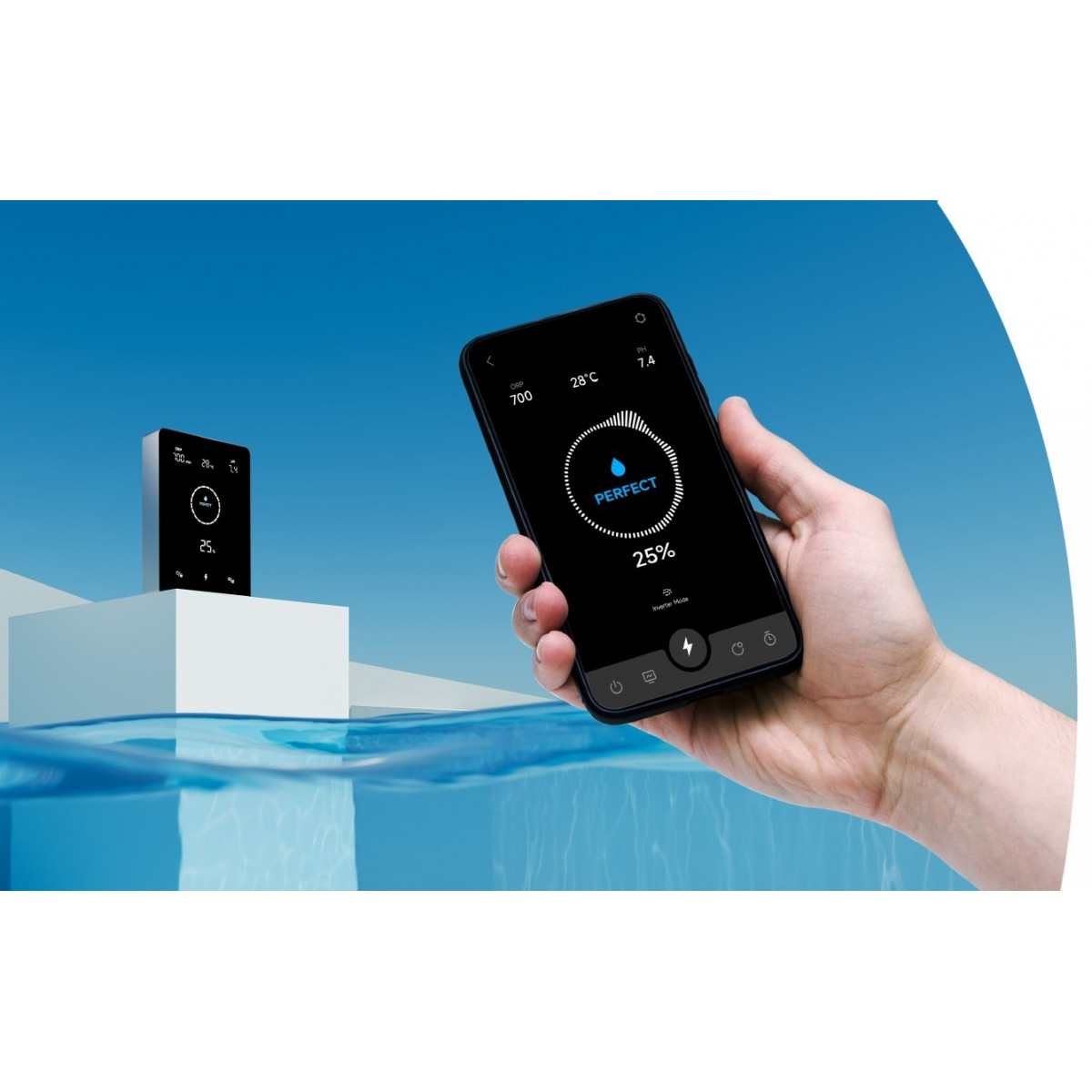 Technológia InverTurbo využíva pokročilý algoritmus PID na presné riadenie produkcie chlóru a reguláciu pH. Vďaka schopnosti prispôsobiť sa rôznym podmienkam a 130 % špičkovému turbo režimu šetrí technológii InverTurbo čas počas úvodnej dezinfekcie alebo po párty. Inverter riadi elektrolýzu v rozmedzí 0 - 130 % na základe zistených údajov.