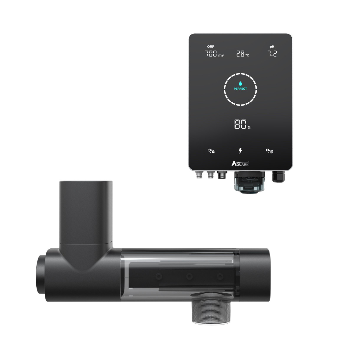 Automatický solinátor s dotykovou obrazovkou od spoločnosti Aquark, ktorý disponuje pH regulátorom so senzorom teploty, prietokovým senzorom a Rx(ORP) sondou pre meranie koncentrácie chlóru. Zariadenie je možné ovládať na diaľku prostredníctvom aplikácie InverGo.